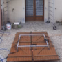 Préparation au sol des deux cadres avant la mise en place des deux volets de la porte fenêtre